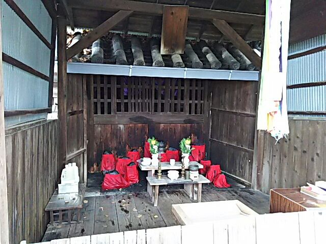 素盞嗚尊神社境内の西、神社駐車場敷地内に「油掛地蔵尊」が祀られている。元はおよそ六百メートル南東の吹田街道沿いにあったものを、昭和三十七年(1962)に道路拡張のためここへ移転した。油をかけると歯痛が治るとか、諸事祈願成就に効験があるというが、それには小栗判官にまつわる謂れがある。